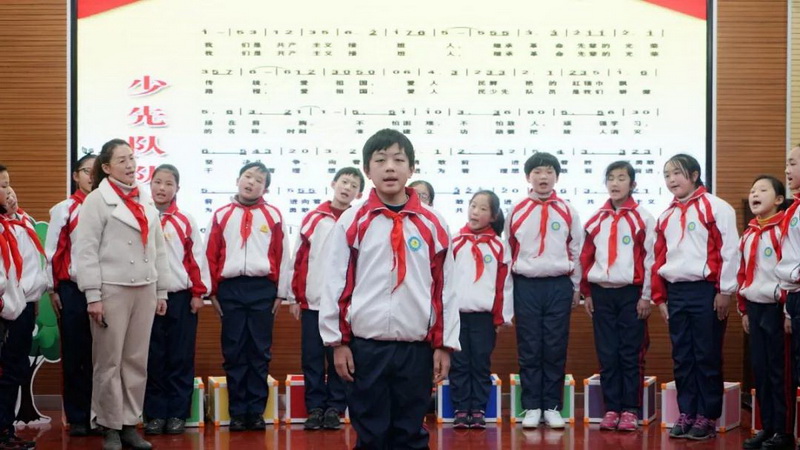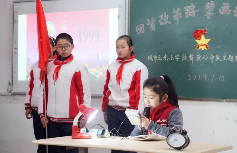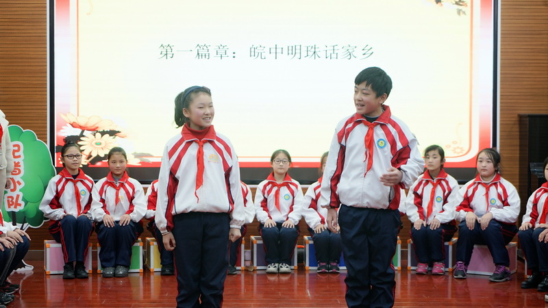 《我们是共产主义接班人》歌曲演唱 “红领巾电视台”的小队员们深入巢湖东站,街边公园、农村居民家中去实地采访,请这些改革的见证者谈一谈家乡的发展。