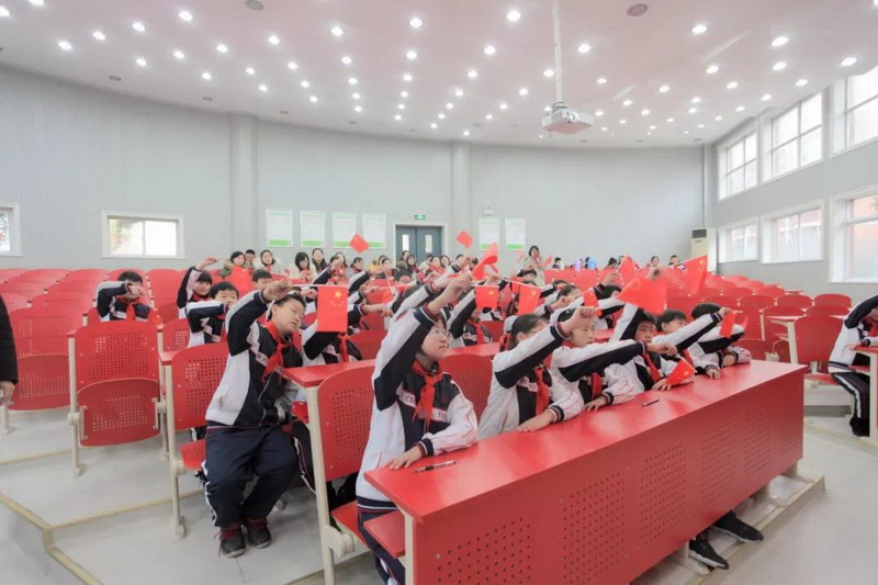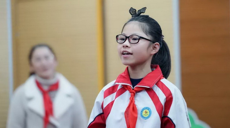 认真聆听 黄麓镇临湖小学第5中队的小队员们用一首《红旗飘飘》表达改革开放以来对祖国日益强大的敬佩,激励自己向梦想出发。