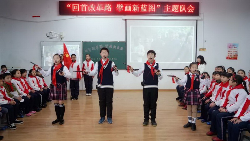 主题队会表演 据悉,为深入学习宣传贯彻党的十九大精神,纪念改革开放40周年,贯彻落实《少先队改革方案》,深入推进少先队活动课程体系建设,培养少先队员的综合素质,引领少先队员爱党、爱国、爱家乡,切实增强少先队组织的先进性和少先队员的光荣感。