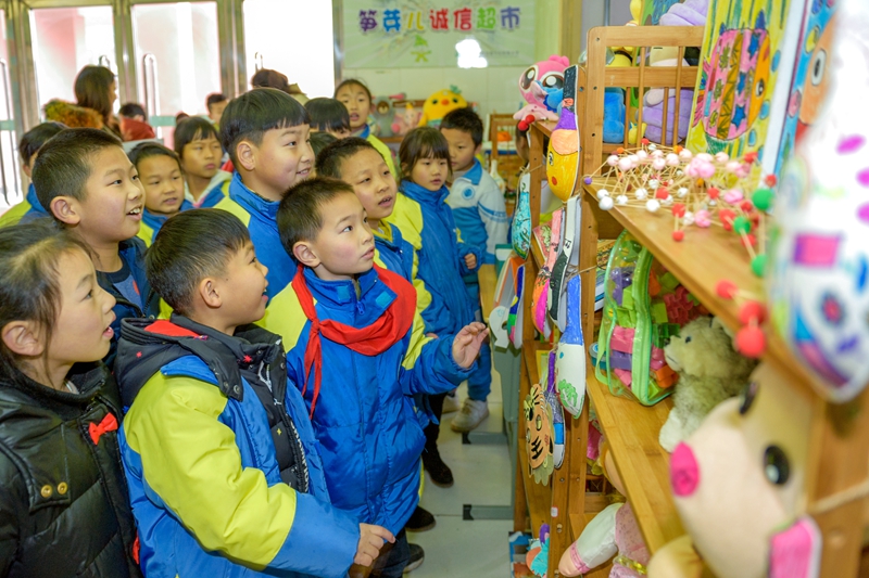 “笋芽儿”诚信超市虽然占地不大,却已成为学生们锤炼诚信品质的大舞台。 1月4日上午9点,响亮的下课铃声如约而至,长沙市岳麓区教师进修学校附属小学教学楼门厅里一下子热闹起来了,各班的学生们排着整齐的队伍,开心走进学校自助诚信超市,购买自己喜欢的货物。 这是学校“笋芽儿”自助诚信超市本学期最后一次经营,货架上成列着的画作、手工艺品、图书、玩具、文具等物品成了孩子们眼中的香饽饽。同学们认真选购,挑好中意的东西后,就按照货品上的标价付款,轻轻放进收银台的钱盒里即可,如果需要找零,也是自己动手从钱盒里拿出相应的钱币,全程都没有老师在侧监管,靠的正是孩子们的诚信自觉与相互督促。 “这是我们学校开展的特色诚信教育特色活动,已经坚持了近4年,如今诚信行为已经成为孩子们的道德‘标配’。”校长曾湘芬介绍说,无人值守的自助诚信超市于2015年2月在校园里推出,由班级轮流负责经营,每两周开放一次。从准备货物到制作海报,从结算盈余到捐赠利润,每一个环节都由班级老师带领同学自主完成。为了经营好自助诚信超市,孩子们想尽各种办法拓展销售渠道,比如增添具有吸引力的超市产品。货架上陈列的书法作品、美术画作、手工制品大多是同学们业余时间制作完成的,精致美观,颇受大家的喜欢,每次开张都是供不应求。还有些同学慷慨捐赠,主动分享自己的书本、玩具等物品,让货品种类变得更加丰富,且价格十分低廉,日积月累之中,自助诚信超市已经成为孩子们日常购物的首选。 曾校长进一步介绍说,“最初经营的时候,确实有钱物丢失的现象,但我们认为这就是诚信教育的契机,要让孩子提前体验社会角色,不断锤炼出诚信观念。”为此,学校大力开展诚信教育和引导,通过主题班队会等方式铸造孩子诚信信念,钱物丢失的情况逐渐消失,拾金不昧、重信守诺的诚信故事开始不断涌现。 2017年10月,冯卓文等三名六年级学生在放学途中捡到了一个女士旧皮包,里面不仅有现金票据,还有银行卡、身份证等贵重物品。同学们一直在原地等了三个多小时,并想尽办法主动联系到了失主,最终将包原封不动送还。这个拾金不昧的故事传播开来后,同学们自编自演为诚信主题校园剧,通过反复的演出传递诚信价值信念。 自助诚信超市开张近四年来,积累的全部款项不仅通过爱心捐助给长沙市青少年基金会,还通过精准帮扶活动走进贫困家庭,校园诚信花朵绽放的同时更结出了累累公益硕果。(记者 陈宇) |
