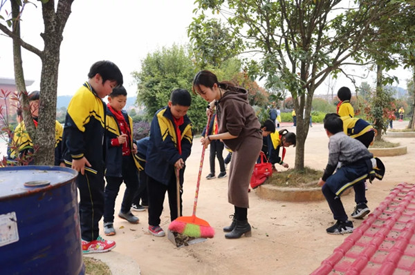 清扫垃圾。 衡东县育星小学组织部分少先队员走出校园,开展学雷锋义务清扫活动。