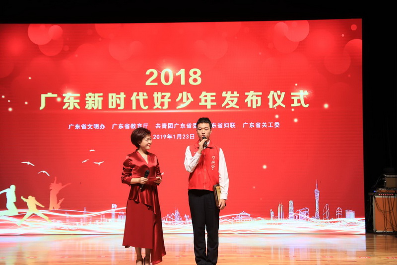 2018广东新时代好少年发布仪式 根据中央文明办、教育部等5部委的统一部署,2018年3月,广东省文明办、省教育厅、团省委、省妇联、省关工委等部门联合举办广东“新时代好少年”宣传推选活动,省直有关单位及21个地级以上市文明办共推荐超过180名候选人。经过层层遴选、联合评审、社会公示,最终选出学习型、创新型、美德型、才艺型共40名广东新时代好少年。其中来自深圳市盐田高级中学的刁兴宇和来自深圳市南山外国语学校(集团)文化学校的张嘉麟经推荐获评全国新时代好少年。