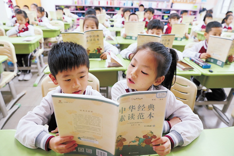 香洲区实验学校开学第一天举行校编读物《礼·实》发布,全校学生读《礼·实》《中华经典》、观看“中国诗词大会”。朱习摄 修美德:约之以礼诵经典 安全教育记心间 不学礼无以立,人无礼则不生。开学当天,不少学校选择以诵读经典的方式作为“开学第一课”。“大道之行也,天下为公,选贤与能,讲信修睦……”18日上午,在升旗仪式后,珠海市田家炳中学1500多名师生们拿出一份《礼记·礼运》的“大同篇”齐声诵读,以诵经典、习国学、修美德的传统文化形式,迎接全新的求知旅程。这是该校“诵经典 品书香 塑人格”的开学主题活动,深受学生喜爱。该校校长程鹏介绍,珠海田中的办学理念是“习礼崇文,促进师生可持续发展”,选择《礼记·礼运》“大同篇”,也是契合学校“尚礼崇德,守正创新”的校训,希望以此活动鼓励学生结合新时代的发展要求,用优秀的传统文化规范言行,弘扬礼仪,传播友善,养成良好的学习和生活习惯。 开学工作万千条,安全教育第一条。珠海市第十中学为同学们准备的开学第一课,是一份安全教育“大礼包”。前山交警中队莫才声中队长以珠海市新近发生的交通案例为教材,对全体师生进行道路安全知识教育,随后进行一键报警应急演练。