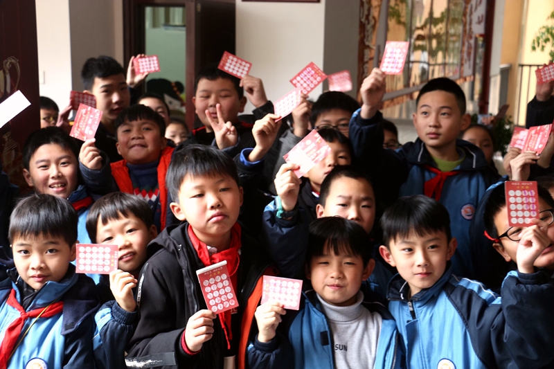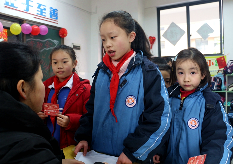 学生们拿着元宵活动卡向记者自己获得的奖章。龙莉摄 赏灯猜谜“知”元宵 走进东澜湾小学教学楼,记者看到每层楼教室走廊外挂满了五颜六色、各式各样的灯笼,学生们奔跑在各个教室之间,整个校园洋溢着喜气洋洋的氛围。 “太阳灶,打一成语。”“红娘子,上高楼。心里疼,眼泪流,打一日程用品。”为浓厚节日氛围,激发学生兴趣,老师们设计了不同类别的灯谜,并把这些谜语贴在灯笼上让孩子们猜。不少学生成群结队地簇拥在灯谜前,有的抓耳挠腮,有的敏思苦想,有的猜着了喜笑颜开。 “在灯会和诗会上就集了3枚奖章,还差两个我就能领到奖品啦!”二年级的王凯同学告诉记者,今天他的运气很不错,在两个灯会区碰了一下运气,连猜中两个灯谜。“我还去诗会区背了辛弃疾的《青玉案·元夕》,换得一枚奖章。老师告诉我们,古代的人喜欢在元宵节猜灯谜、吟诗作对,我很喜欢这个节日,等会和伙伴们分享一下我的快乐。”王凯同学说。