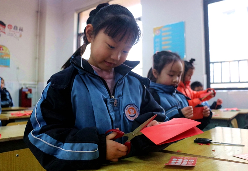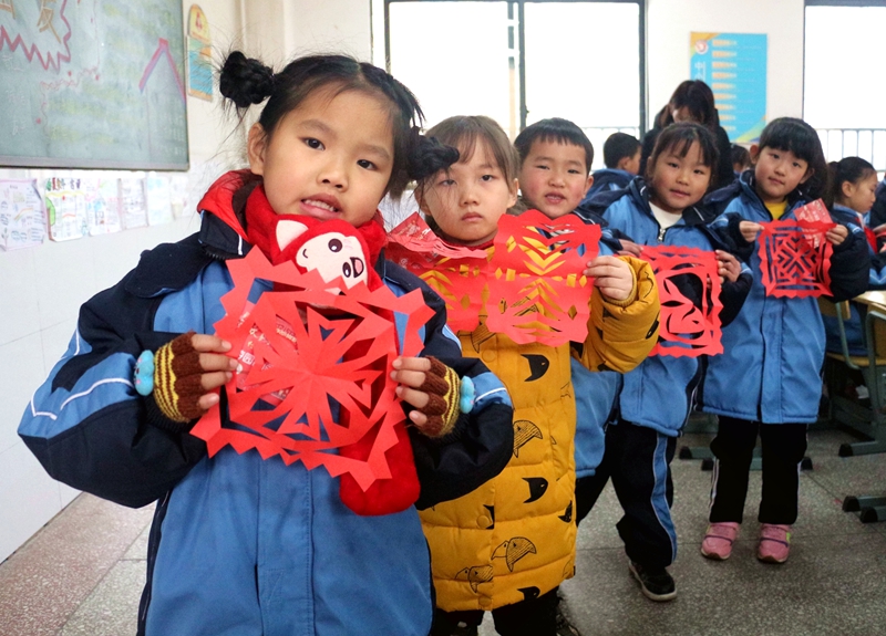小朋友们秀窗花。龙莉摄 传统文化“润”人心 剪纸、折纸等艺术是古老的中国民间艺术,它能给人美好的艺术享受。在活动中,孩子们或上交自己制作的元宵主题手工艺品,或在老师指导下体验传统折纸、剪纸。“今天是我第一次学习剪纸,在老师的指导下很快完成一朵窗花。我要带回去给爸爸妈妈看,今晚要开心地度过一个元宵之夜!”三年级的刘妮妮同学说。 “以往都是让学生们从书本上了解传统民俗、传统文化,亲手做一做、亲自尝一尝,意义更加非凡。我们想用这样一种特别的方式,让孩子在校园里过一个难忘的元宵节,也让他们感受中国传统文化的魅力。”活动负责人告诉记者。(记者 龙莉) |