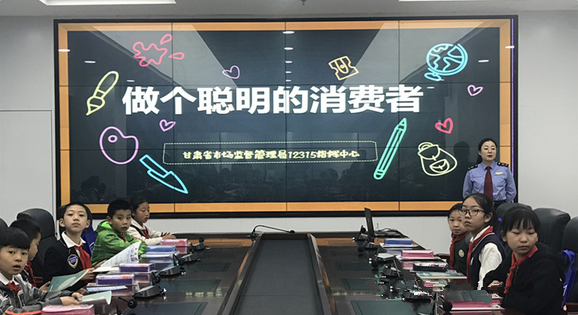 消费维权课 3月14日,对于兰州市城关区畅家巷小学和新华分校四年级的46名同学来说是特别的日子。他们在省市场监督管理局12315指挥中心上了一堂别开生面的消费维权课,现场“零距离”体验了消费投诉登记、分派流转工作的全过程,让他们受益匪浅,感慨颇多,并表示要诚信,争做维权小卫士。