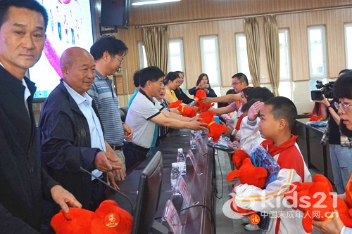 发放爱心物资 仪式上,各参与单位为34名困境学生发放了价值两千余元的书包、文具,并赠送了县机关事务管理局捐赠的玩具。县一小西校区校长代表本次参与学生感谢各级领导和爱心人士对他们的关心和帮助,希望孩子们好好学习,学会感恩,将来做个对社会有用的人。