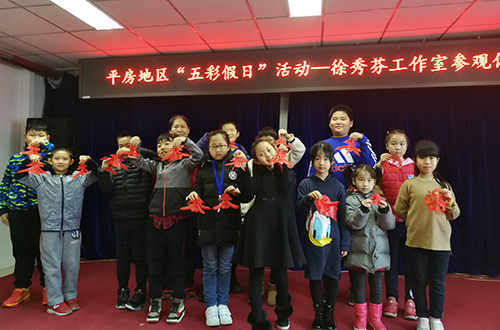 寒假来了!平房地区的小朋友们正式进入了“五彩假日”时间,村里、社区里,一大波精彩的青少年活动正在袭来。第一周里,剪纸、书法、机器人、编程、七彩黏土等已纷纷亮相。 传统文化 剪纸迎新春 年味浓起来 “这是我剪的一幅‘福禄寿喜’图,上边两只喜鹊寓意喜,旁边两只蝙蝠寓意福,中间两只寿桃寓意寿,下边两只鹿寓意禄。”1月21日上午,平房地区“五彩假日”拉开序幕,在平房社区的徐秀芬剪纸工作室,一场精彩有趣的剪纸表演及授课正在开展。当天,30余名来自地区各村、社区的孩子前来参观体验,长期跟随徐秀芬学习剪纸的郑帅旗、罗歆艾小朋友成了课程的两名小助手。