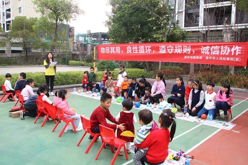 小朋友们捐赠旧物品 2月14日下午,漳平市税务局联合漳平市检察院开展了以“环保再利用”为主旨,以物物交换为路径,以小集市为载体的“检税青年文明号联盟•环保小集市”活动。