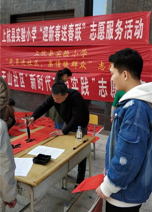 “迎新春送春联”志愿服务活动现场 1月28日上午,上杭县实验小学与共建社区天山支部联合在天山社区新居委会开展“迎新春、送春联”志愿服务活动。组织党员教师志愿者开展“迎新春、送春联”活动,义务为社区居民写春联、送春联。 2月12、13日,党员教师和学生志愿者共70余人走上街头,各负其责地维护所分辖区内路口及人行横道交通秩序,劝导交通违法行为,并进行交通文明、交通安全、交通法规知识等内容的宣传讲解。 |