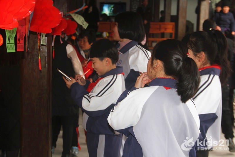 猜灯谜 孩子们制作的灯笼被挂在了方巷文化礼堂内,方巷村村民还邀请家长和孩子们一起做汤圆、猜灯谜,活动现场热闹非凡,节日氛围浓郁喜庆。(温州市永嘉县精神文明建设指导中心) |