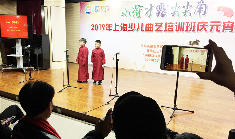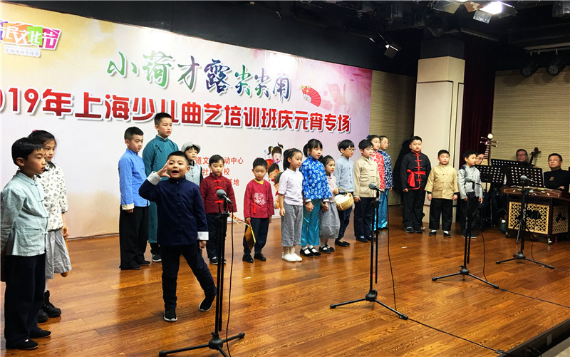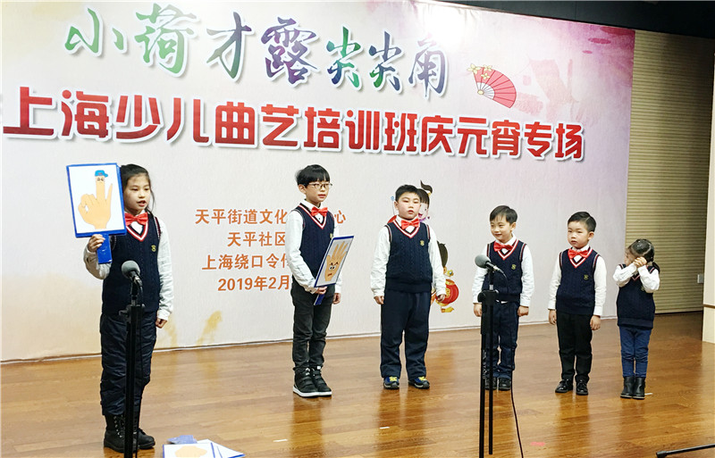 2019年上海少儿曲艺培训班庆元宵专场演出 “春二三月(末)春光好,今朝仔,小巴腊子上台来汇报。上海曲艺培训班,小朋友来了一大淘;顶大格小学四年级,顶顶小格四岁还不到……先要学标准上海话,再把上海曲艺传承好……”2月17日,上海市徐汇区天平社区文化活动中心“名家坊”剧场,天平街道“名家坊”成员、曲艺理论家徐维新,“上海绕口令”代表性传承人俞惠娣,著名滑稽演员殷志强等牵手“小八腊子”,说学逗唱上演了一台“小荷才露尖尖角”——2019年上海少儿曲艺培训班庆元宵专场演出,“晒一晒”“小八腊子”们一年来学曲艺的成果。