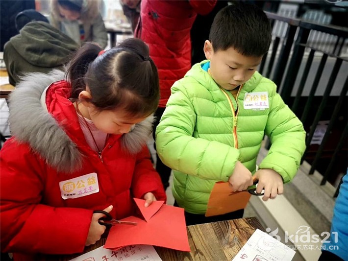 剪纸体验 活动现场设置了写对联、包饺子体验区、画灯笼、剪纸体验等趣味小游戏,20组家庭热情高涨,踊跃参加各自喜欢的活动,有的在欢快地观望别人游戏,有的在排队等待一显身手,现场充满欢声笑语,呈现出热闹欢乐祥和的节日气氛,洋溢着浓浓的亲子融洽之情。