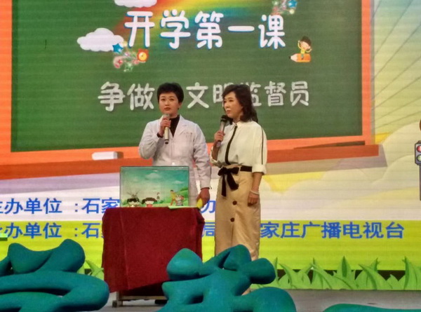 2019春季《开学第一课》 又是一年开学时。为巩固全国文明城市创建成果,倡导小手拉大手,从我做起带动家庭、带动身边人遵守践行《石家庄市公共文明行为条例》,由石家庄市文明办主办,石家庄市教育局、石家庄广播电视台承办的2019年春季《开学第一课》于日前录制完成,并于2月20日晚在石家庄广播电视台生活频道播出。全市中小学生和家长共同收看了这堂有意义的“第一课”。