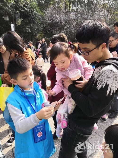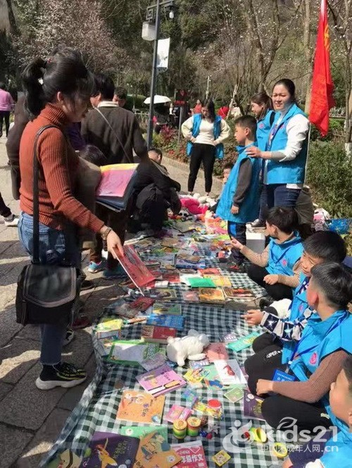 志愿者身穿小马甲,向游客介绍商品信息 孩子们穿着志愿者小马甲,将自己心爱的玩具、书籍、文具等物品展示在活动现场,吸引了很多广场上的家长和孩子的围观,成为广场上一道独特的风景线。一开始孩子们不敢和游客搭话,在家长及志愿者的引导下逐渐克服了胆小和害羞心理,全身心投入到爱心义卖中去。此次义卖,共收获义卖款1000余元,这些爱心款将全部捐赠贫困家庭。义卖结束后,志愿者带领着同学们在公园开展捡垃圾活动。希望孩子们从小树立环保意识,用实际行动宣传环保理念。