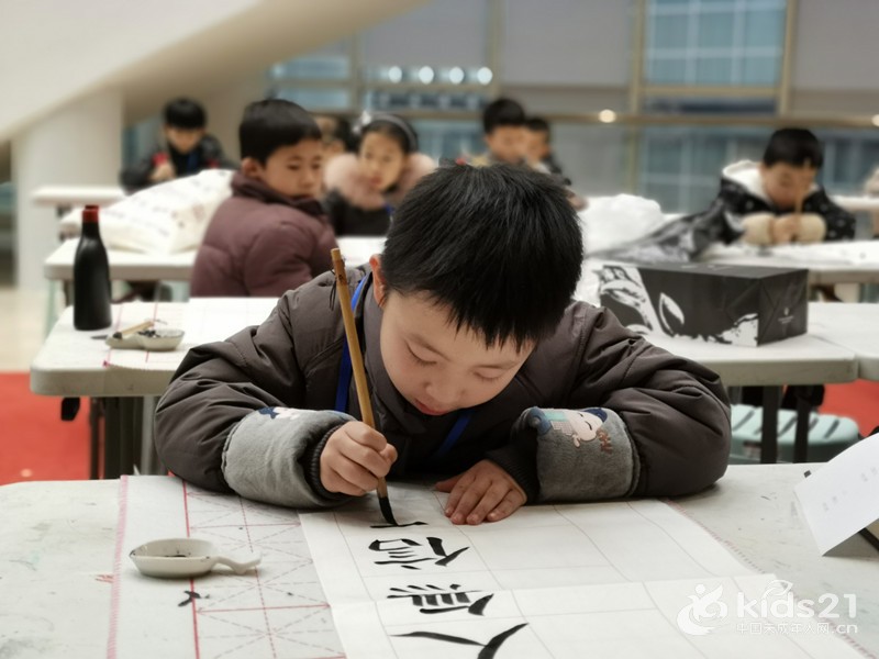 活动现场 大赛的参赛者来自全市多所中小学校,年龄从7岁到14岁不等。大赛分为硬笔、软笔和篆刻三种形式,比赛内容由主办方现场命题,统一发放作品纸张,做到公平、公正、公开。